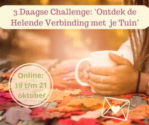 Yes, zondag 19 oktober start er weer een ronde van de gratis 3-daagse Challenge. Maak verbinding met jouw tuin en ontdek hoe die helend kan worden & Ontdek de persoonlijke inzichten die ze voor jou heeft.